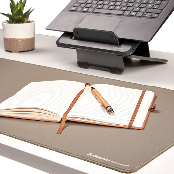 Prostorná podložka na stůl Fellowes BREYTA chrání před znečištěním, poškrábáním a vytváří pracovní plochu bez nepříjemných odlesků. Poskytuje dokonalou a pohodlnou plochu pro psaní, používání klávesnice a myši.